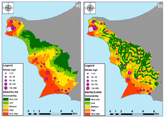 - Debernardi, L.; De Luca, D.; Lasagna, M. Correlation between nitrate concentration in groundwater and parameters affecting aquifer intrinsic vulnerability. Environ. Earth Sci. 2007, 55, 539–558. [Google Scholar] [CrossRef]