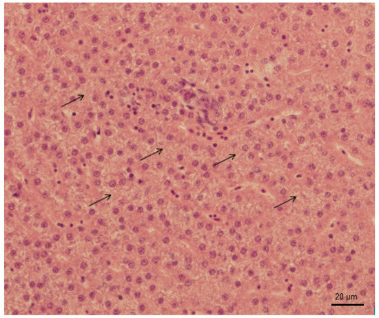As a result of our experiment, only histopathological changes in liver (abnormal glycogen accumulation) were observed among tested groups, apart from the lowest concentration of 0.2 µg/L (Figure 1). In contrast, no histopathological changes in liver of common carp after tramadol hydrochloride exposure were described by Sehonova et al. [27].