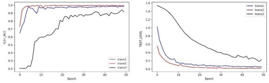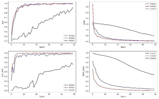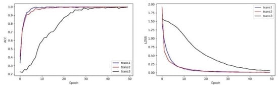 Figure 18, Figure 19, Figure 20 and Figure 21 show the comparison of transfer methods in four groups of experiments. It can be seen that TM2 is superior to the other two transfer methods in terms of fitting speed, convergence speed and test accuracy in four target domain data quantities. When the amount of data is small, TM1 is better than TM3. With the increasing amount of data, TM1 has the same performance as TM3.