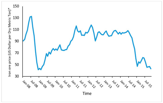 - Wårell, L. An analysis of iron ore prices during the latest commodity boom. Miner. Econ. 2018, 31, 203–216. [Google Scholar] [CrossRef]