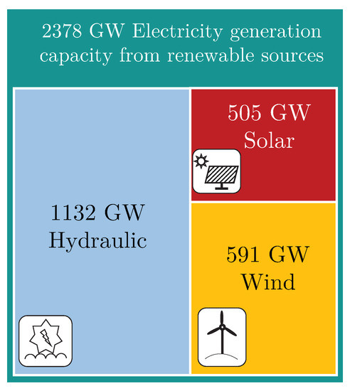 Nowadays, the increase in the world population, environmental pollution resulting from the burning of fossil fuels, and the need to deliver electricity to remote areas are factors that drive the use of renewable energy (RE). It is expected that these fundamental tasks and the fulfillment of international agreements related to the protection of the environment will be solved with the greater use of clean energy [1]. Solar, hydroelectric, and wind power are the primary sources that are being used by the new technologies [2].