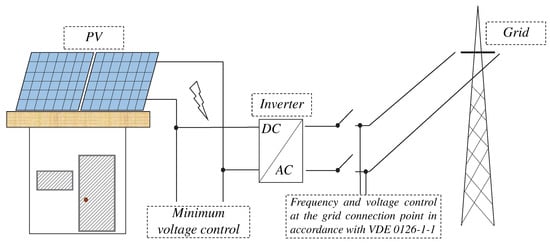 At present, specific standards regulate the generation systems connected to the grid. The code VDE-AR-N 4105 governs the implementation of the European Network Code Requirements for generators for the low-voltage (LV) grid in Germany. In general, the code describes the grid connection requirements for generators at all voltage levels [38]. The regulations include capabilities for frequency stabilization, provision of reactive power to the point of black start capacity of large installations.