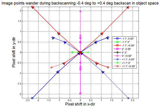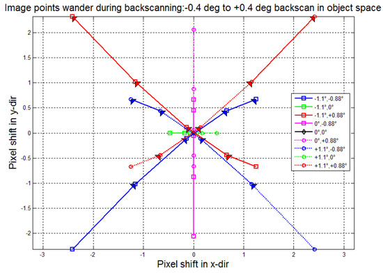 Figure 7 indicate motion (in units of pixel IFOV) of the chief ray at nine image points during the back-scan operation. As we can see in