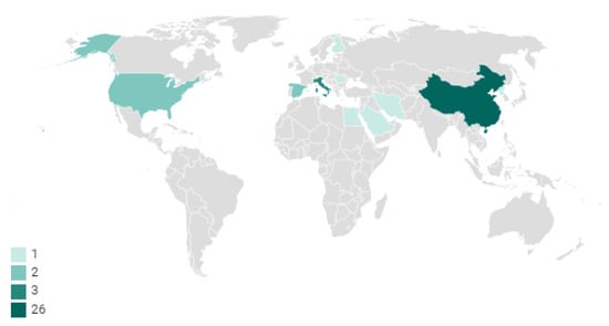 About countries, Figure 3 on the world map demonstrates the countries where are located the cities which were served as a case study in the publications. It can be noted that China is leading this kind of research works with 26 papers, followed by Italy (3 papers), Spain (2 papers), USA (2 papers), South Korea (1 paper), Iran (1 paper), Egypt (1 paper), Romania (1 paper), Qatar (1 paper), Finland (1 paper) and Saudi Arabia (1 paper).