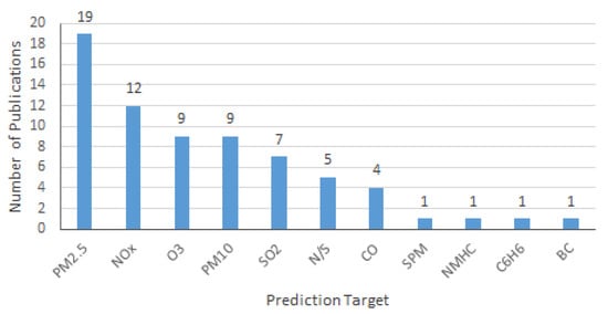 Comparing the Performance of Statistical Models for Predicting PM10 Concentrations [48]: is focused on the hourly PM10 prediction. The following machine learning methods were applied, including MLR, QR, Generalised Additive Model (GAM), and Boosted Regression Trees 1-way (BRT1) and 2-way (BRT2). The dataset included air quality (CO, SO2, NO, NO2, PM10) and meteorological (wind speed, wind direction, temperature, relative humidity, rainfall, pressure) data of the city of Makkah during 2012. To evaluate the methods, the Mean Bias Error (MBE), MAE, RMSE, the fraction of prediction within a Factor of Two (FACT2), R, and IA were applied. The results showed that QR outperformed other methods. As a limitation it was mentioned that only one city was considered as a case study, and also the time period was short.