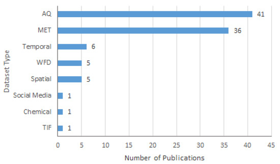Regarding publication years, Figure 2 shows the progress of the publications related to air quality prediction in smart cities using machine learning techniques based on sensor data.