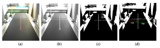 Although there is no angle information in the detection results of Method 2, we can see the distance between the left and the right conveyor belt edge and the laser reference line more clearly and intuitively. The comparison and verification of the two distance information make the output result more reliable and the experimental error smaller.
