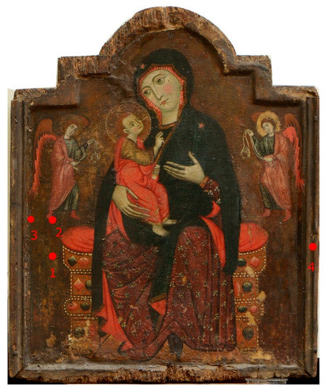 Figure 1), has shown elements of great interest regarding the execution technique, such as the presence of a sort of “negative” painting technique trough the wooden support, as well as the use of silver applied on wood as a background. Both these peculiarities legitimized a more in-depth examination of this painting.