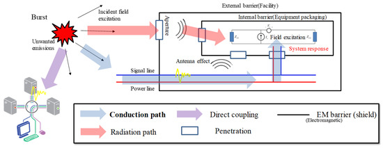 In an electronic warfare environment, the externally intended attack reaches a major friendly facility through the atmosphere. A High-altitude Electromagnetic Pulse (HEMP) or jammer attacks occur at relatively long distances (hundreds of kilometers), and the victims are attacked using plane waves. This attack has a wide frequency characteristic, the strongest of which is at the resonant frequency, which is most affected by the size of the structure of the protective installation.