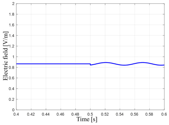 The time axis was sampled at 0.001 s, and the active signal was applied at 0.5 s. From this time, it was confirmed that there was no cancellation due to the frequency difference, and it was fluctuating slightly. Since the fundamental frequency was very high compared to the sampling frequency, it could be seen that the section before 0.5 s, where only IEMI, exists looked like DC. Therefore, the sampled signal for the section after 0.5 s is shown as a function of Δ