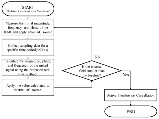 The internal signals can be canceled accurately using this technique by analyzing the mixed signal of the IEMI and active signals. The active cancellation algorithm using MPM can be summarized as follows: