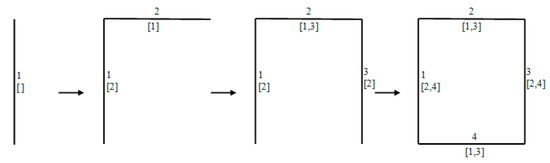 An example of assignment of IDs to segments (IDs between square brackets indicate the IDs of the connected segments).