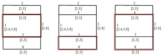 Rectangles are used to represent classes and objects in UML static diagrams, in addition to being part of other more complex shapes such as packages, components and so on. The identification of rectangles is achieved using the vertical and horizontal segments identified according to the previous subsection. The objective is to find four cyclically connected segments whose identifiers go in ascending order (possibly with gaps among them). This last restriction is aimed at obtaining a unique representation of each rectangle as a sequence of its edges, starting with a vertical one. In addition, it is required that the segments are not discontinuous and have a minimum length of 10 pixels (another heuristic value; shorter segments usually are false positives).
