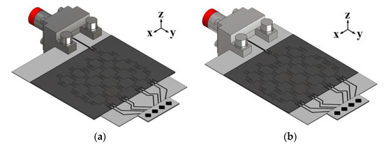 Figure 16. Fabricated prototypes of the antenna: (a) port 2 model and (b) port 4 model.