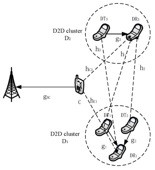 In D2D communication, resource allocation has a huge impact on system performance which has caused widespread concern. In Reference [3], the Nash bargaining game was applied to D2D resource allocation in order to improve the throughput of users. In Reference [4], cooperative and noncooperative games were applied to allocate transmit power for D2D users. In Reference [5], a channel allocation mechanism for D2D users based on Kuhn–Munkres (KM) algorithm was proposed, then D2D users’ transmit power was optimized in order to reduce interference. In Reference [6], cellular, D2D, and relay users formed a student-project matching model to improve the system throughput. However, the above algorithms only consider one-to-one D2D communication with orthogonal multiple access (OMA). Many-to-one D2D communication has not been considered to further improve the system throughput through nonorthogonal multiple access (NOMA).