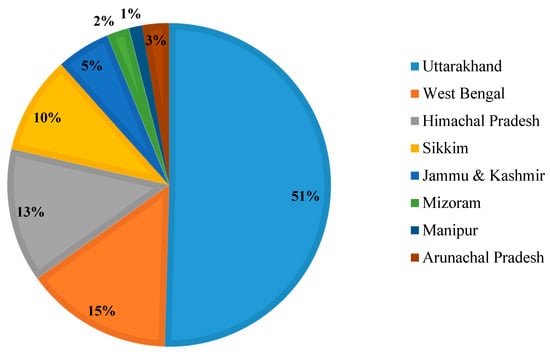 Distribution of landslide studies across the states in Indian Himalayan region.