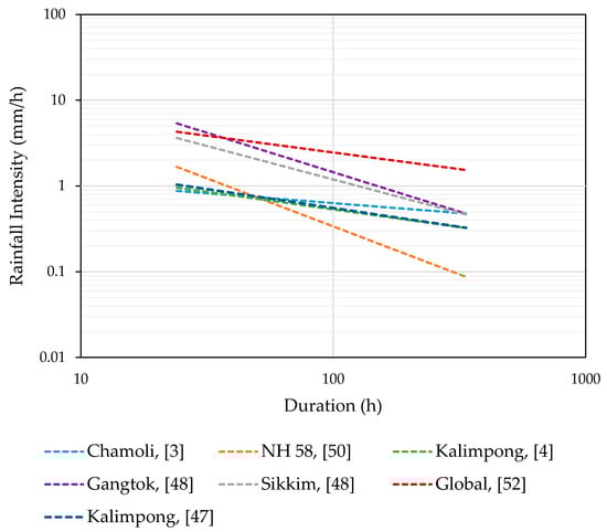 Comparison of various ID thresholds developed for various Himalayan regions with global thresholds defined by Caine [52].