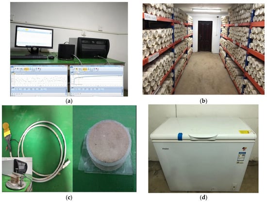 In order to make the specimen as large as possible, the No. 4922 Kapton film probe was used in the experiment (radius is 29.4 mm). The specimens were formed into two columns with 80 mm in diameter and 30 mm in height. The dry density and water content of specimens were determined by the field measurement data, which was tested by the suspending weigh method and oven drying method, respectively. The corresponding test soil was taken from sample library (Figure 3b). After drying, milling and sieving, the specimen was sampled by the statistic pressure method. Furthermore, for the high water content and icy specimens, the crushed smoothie was used for specimen making.