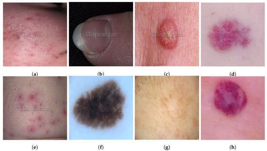 - Liao, H. A Deep Learning Approach to Universal Skin Disease Classification; University of Rochester Department of Computer Science, CSC: Rochester, NY, USA, 2016. [Google Scholar]