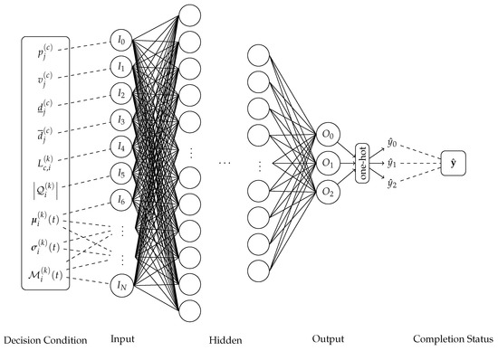 However, since the number of candidate MRs is large and the processing statuses of these MRs are changing over time, the conventional search algorithms are no longer applicable because they will spend a long time checking all of the possible time intervals in every candidate MR. Therefore, we adopt an ANN that is based on the multi-layer perceptron architecture to speed up the searching procedure by estimating the objective values of each candidate MR.