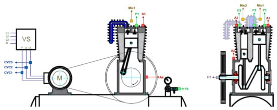 In total, 13 different multi-fault classes were considered. P1 denotes the healthy class and classes P2-P13 correspond to 12 combinations of one fault type in the roller bearings with each one of the four possible faults in the valve. The fault combinations are described on Table 1. The internal and external parts of the reciprocating compressor used for dataset acquisition are shown in Figure 12.