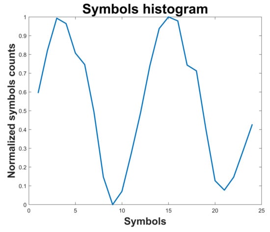 Histogram of symbols for the healthy case P1 of the reciprocating compressor.