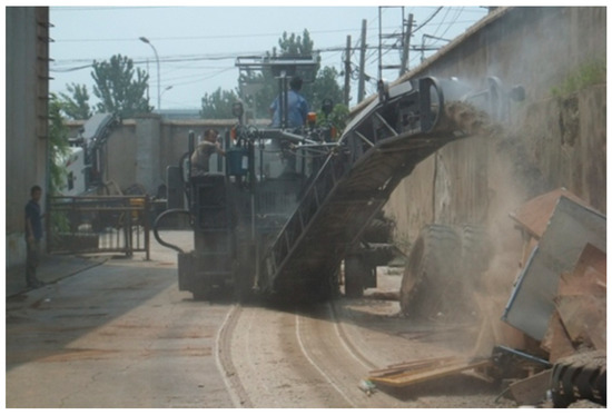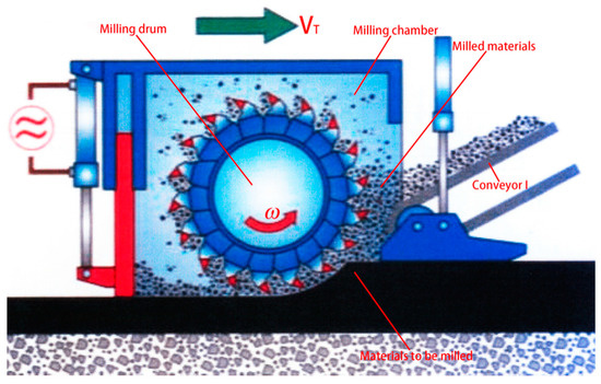 - Hu, Y.; Ma, P.; Zhang, X. Modelling and simulating of cold milling machine. J. Chang’an Univ. Nat. Sci. Ed. 2008, 28, 92–95. [Google Scholar]