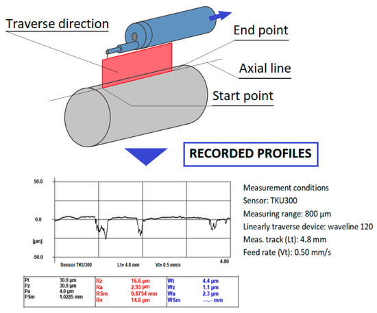 The texture of the machined area was monitored by a HOMMEL-ETAMIC TURBO WAVE V7.45 (contact profilometer Figure 6). The following parameters of surface roughness were selected as the basic indicators of the morphology of the machined surfaces as part of the experimental verification: