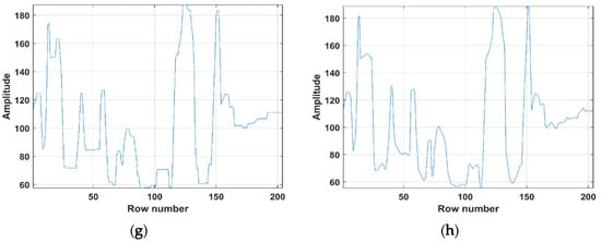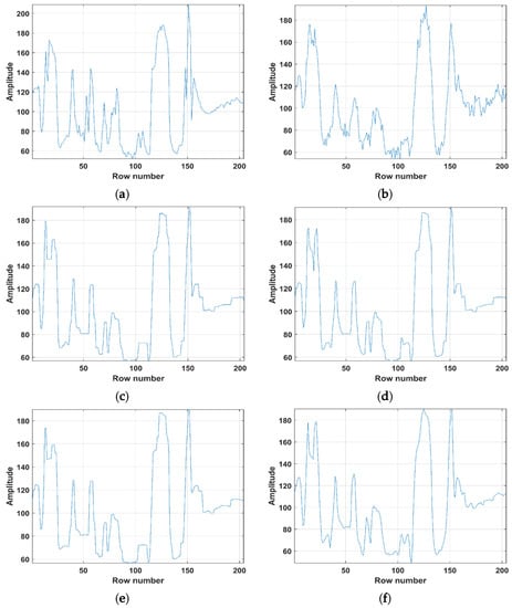 The deblurring results for the “Store” are depicted in Figure 6. To better exhibit the effects of the six algorithms, a part of “Store” details in the red rectangles was enlarged. It can be seen that the HTV-Lp model minimized the noise while simultaneously reliving the staircase artifacts in slanted and smooth regions of the image during image deblurring. In addition, the Lp-pseudonorm can depict the sparsity of processed variables more precisely compared to the L1-norm. Figure 7 depicts the single columns extracted by original image, degraded image and deblurring images of ATV, ITV, ATpV, FTV4Lp, Hybrid TV, HTV-Lp. It is found that the HTV-Lp achieves the flattest curve among the compared methods.