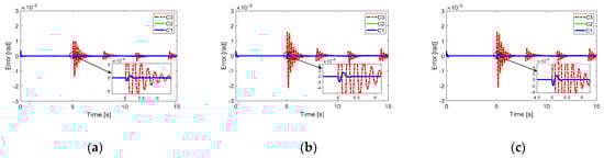 Tracking error at each joint with different values of . (a) Joint 1; (b) Joint 2; (c) Joint 3.