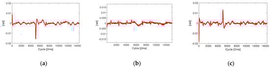 The synchronization error with multiple faults. (a) Joint 1; (b) Joint 2; (c) Joint 3.