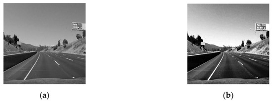 To focus on the useful information and weaken or exclude interference information, the gray images need to be processed using image enhancement technology. Histogram equalization is applied to process the gray image, as it can increase the dynamic range of the pixels and lessen the computation load. After histogram equalization, the dynamic range of pixels becomes wider, and the difference between the lane line information and other interference information becomes more obvious. The effect of the histogram equalization is shown in the Figure 1.