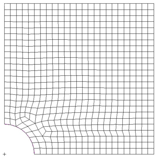 As the homotopic mesh is conveniently applied between and , as shown with the lines in Figure 8, the new global stiffness matrix can be easily obtained by adding the changing part of .