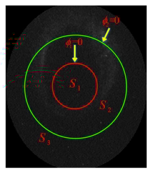 LIDLSM [] is a level set method explicitly designed for auroral oval segmentation. In LIDLSM, Yang et al. [] utilized dual level set function of and to obtain the inner and outer auroral oval boundaries, respectively. Suppose that is an image domain, is the input auroral oval image. Two level set functions can divide the auroral oval image into three regions: