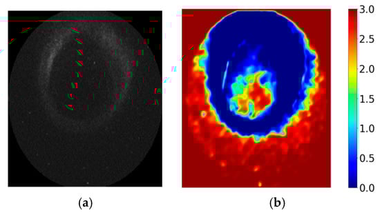 Auroral image and the corresponding time step map. (a) Auroral oval image. (b) The corresponding time step map.