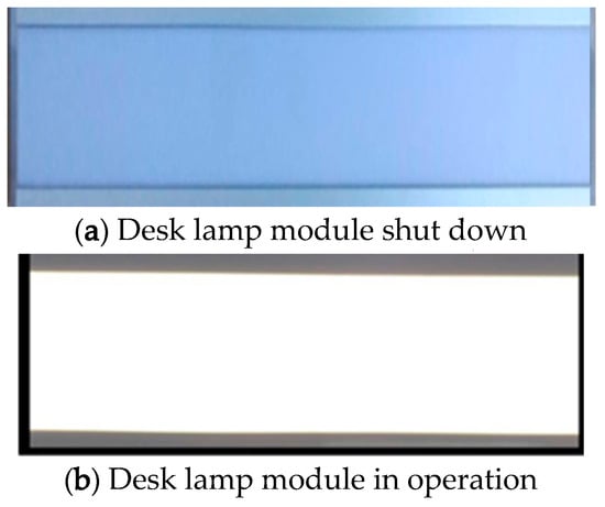 Figure 10 shows the illumination map of the desk lamp module when it was (a) shut down and (b) in operation.