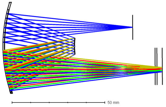 - Kim, S.H.; Kong, H.J.; Lee, J.U.; Lee, J.H.; Lee, J.H. Design and construction of an Offner spectrometer based on geometrical analysis of ring fields. Rev. Sci. Instrum. 2014, 85, 083108. [Google Scholar] [CrossRef] [PubMed]