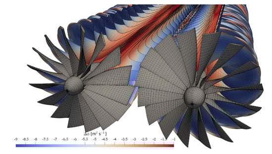 - Peters, A.; Spakovszky, Z. Rotor Interaction Noise in Counter-Rotating Propfan Propulsion Systems; ASME International: New York, NY, USA, 2010. [Google Scholar]