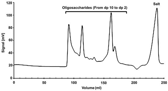 As observed in Figure 3, different families of oligosaccharides were fractionated from dp 2 to dp 10 according to Mw calibration [].
