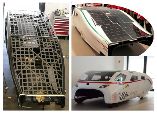 The vehicle is a four-passenger quadricycle [31] where every technical solution was designed with the scope to improve the overall car performance (Figure 1). The replacement of the out-of-date photovoltaic panels, as well as changes in the safety structure eliminating the metal roll bar [32], driven by the need to respect rules of a different race, gave the chance to intervene on the roof through this optimization.