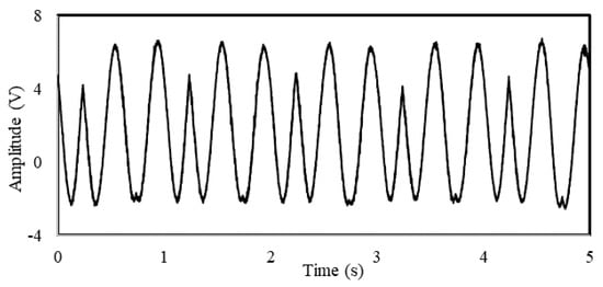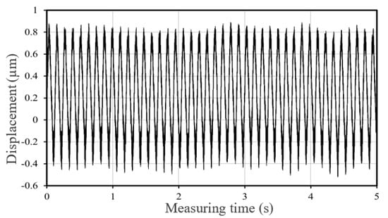 In order to verify the performance of the interferometer at a higher measurement speed, the interferometer was employed to measure the axial error of a spindle. The spindle (Chuo Precision Industry Co., Tokyo, Japan.) was driven at a velocity of 500 rpm. The axial error of the spindle was measured using the first and second harmonics. An axial error of about 1.3 µm was measured, as shown in Figure 10. The interferometer could operate stably, even though vibration and air disturbance were present.