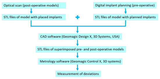 - Brandt, J.; Brenner, M.; Lauer, H.C.; Brandt, S. Accuracy of a Template-Guided Implant Surgery System with a CAD/CAM-Based Measurement Method: An In Vitro Study. Int. J. Oral Maxillofac. Implants 2018, 33, 328–334. [Google Scholar] [CrossRef]