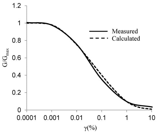The initial shear modulus of the soil depends on the magnitude of the confining pressure according to the soil depth. In this study, the initial shear modulus was calculated using Equation (6) proposed by Hardin & Drnevich (1972) [].
