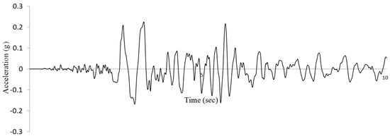 The model pile was fabricated with aluminum. It measured 0.67 m in diameter and was 0.072 m thick. The pile head was located 3.8 m from the ground surface, and a superstructure load of 480 kN was installed. The penetration depth of the pile was 16.8 m, and the pile end simulated the friction pile located approximately 3.7 m from the bottom of the soil container. The soil container was filled with a fluid of a viscosity approximately ten times greater than water, which was fabricated by mixing a viscous fluid (Hydroxyl-propylmethyl-cellulose) with water to generate saturated soil conditions and to satisfy similitude law for the permeability (Stewart et al., 1998 []). For the input seismic wave, the Kobe (1995) seismic wave (Port Island 83-m depth, NS direction) was used, for which the maximum acceleration value was scaled to 0.22 g. Figure 8 shows the input acceleration-time history used in experiments and numerical analysis.