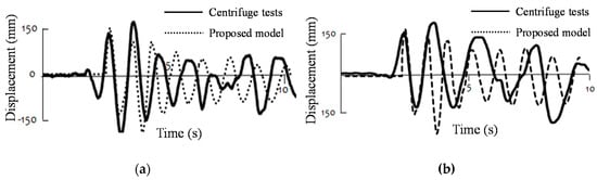 Comparison of pile head displacement: (a) Case 1 (Dr = 55%) and (b) Case 2 (Dr = 35%)