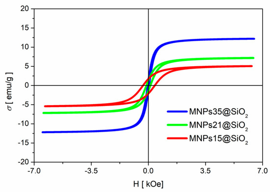 In Figure 3 and Table 3 are presented the magnetization curves and magnetic parameters, respectively, of the synthesized nanocomposites.