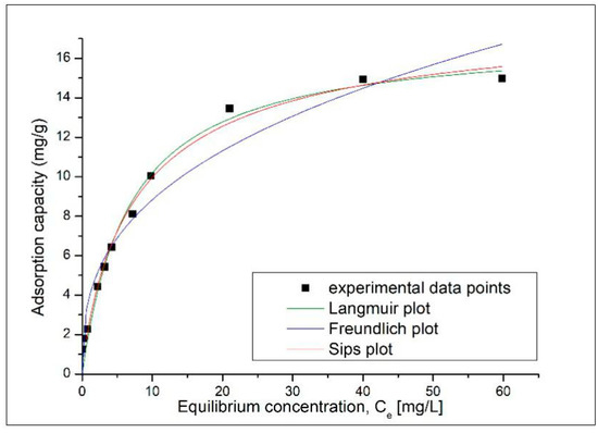 where: qS—maximum adsorption capacity (mg·g−1); KS—constant related to adsorbent adsorption capacity; nS—heterogeneity factor.