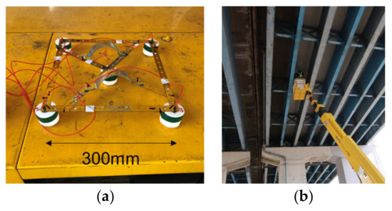(a) Accelerometer array unit; (b) Overview of on-site implementation.