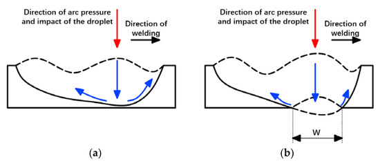 Oscillation mode of weld pool: (a) partial penetration; (b) full penetration.