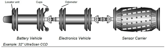 The UltraScan™ CCD pipeline inspection tool consists of several vehicles connected by linkage towbars as shown in Figure 1.